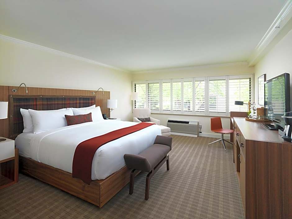 Located on the third floor, this room features vaulted cathedral ceilings, a seating area with sofa bed, a granite and tile private bathroom. Bathrobes are also provided.